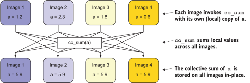 Figure 12.4 illustrates how co_sum works when invoked on four images.