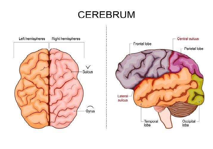 Cerebrum is the largest section of the human brain. This part is situated in the forebrain. The cerebrum is naturally divided into two parts. The parts are right hemisphere and left hemisphere. It contains almost 80% of the weight of the human brain.