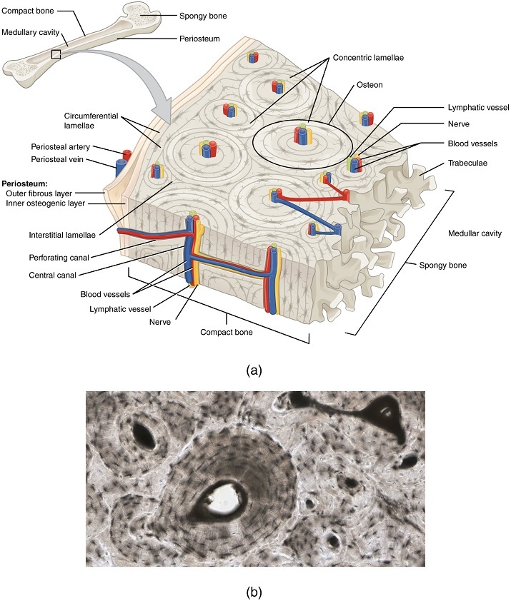 - Both types of bones have blood vessels, bone marrow and nerves at the lamella.